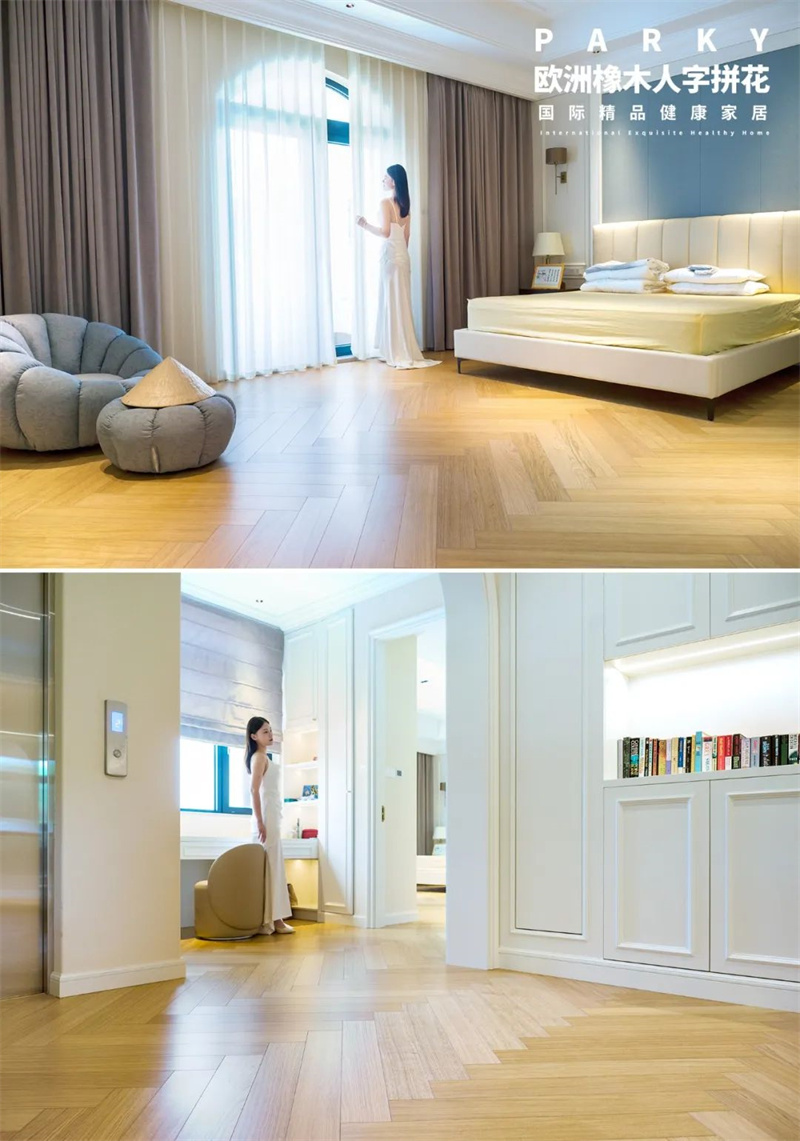 淺色調(diào)線性木紋肌理,注入明凈的舒適視感。人字拼花造型增添豐富的層次感與立體感,極具摩登質(zhì)感,每一處細(xì)節(jié)里,都可見高雅的品味追求。?